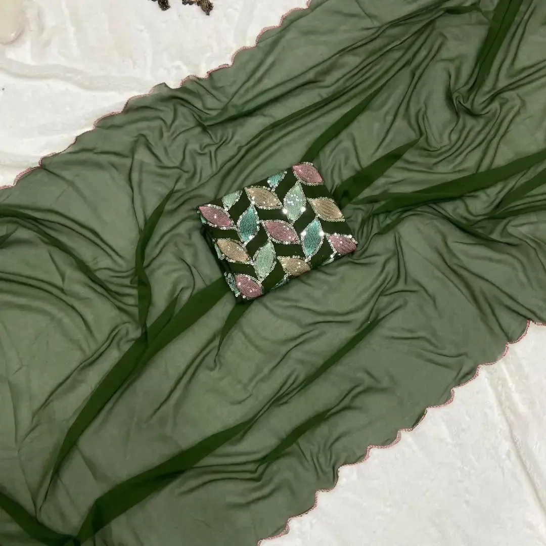 - Versatile Design: The solid color and intricate embroidery make this saree versatile enough to suit various occasions.
