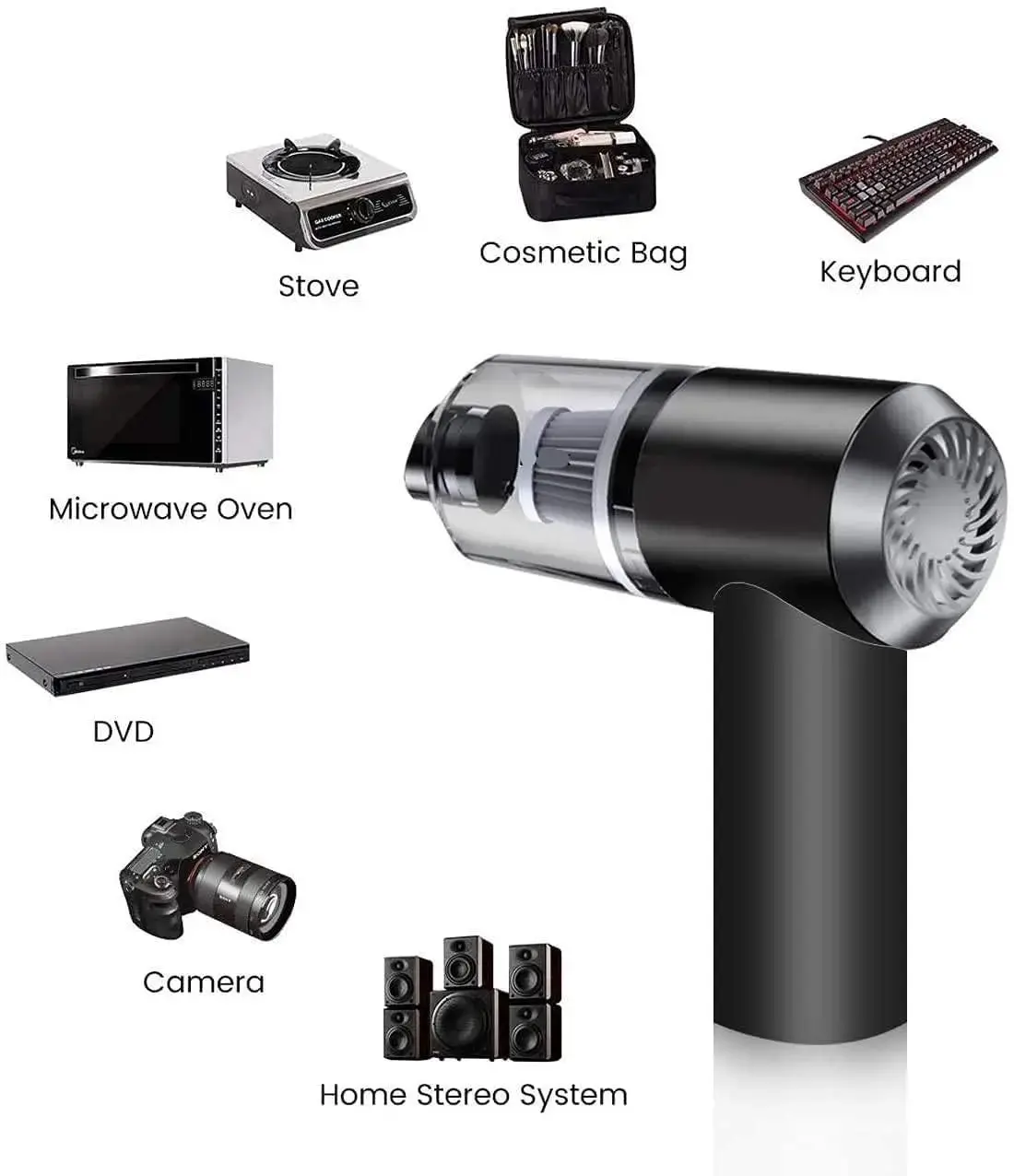 Take control of dust and debris anywhere, anytime with Bigkaart's Portable Air Duster Wireless Vacuum Cleaner! This innovative tool is your secret weapon for tackling dust bunnies, crumbs, pet hair, and more on furniture, electronics, cars, and even tight spaces.